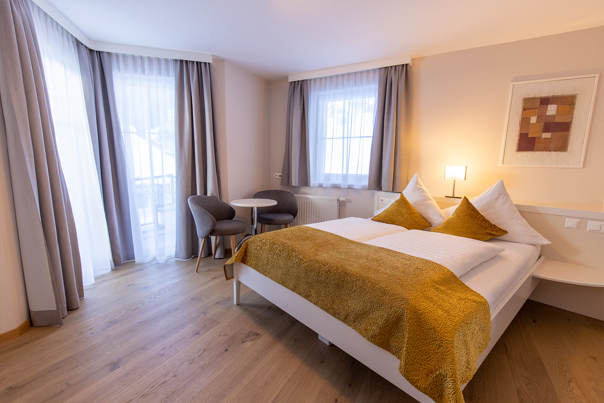 Wir bieten Einzelzimmer und Doppelzimmer in 3 verschiedenen Kategorien. Die Einzelzimmer sind 10 - 13 m² groß, die Doppelzimmer je nach Kategorie zwischen 16 und 25 m².